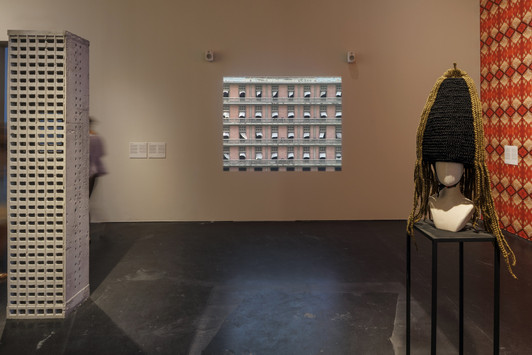 Solda: Hale Tenger Beyrut, Guest Relations sergisi, Art Jameel izniyle. Fotoğraf: Daniella Baptista Sağda: Hale Tenger, Beyrut, 2005-2007, Tek kanallı sesli video Müzik: Serdar Ateşer, Ses: Youtube/msoubra, 3’47’