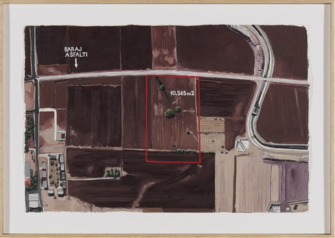 Televizyon, araba, arazi ve çocuk gibi mekanik, coğrafi ve toplumsal görsel öğeleri daha önce de işlerimde kullandım. Ama bu öğelerin, yıllar içinde çalışmalarımda değişkenlik göstererek bu yoğunluğa gelmesini serginin konusunun katmanlılığına ve ilişkiselliğe bağlıyorum.
