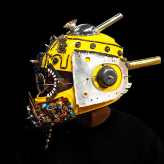 Kenya’da bir yer inşa ediyorum, Nairobi’nin hemen dışında. Bu mekânın bir çeşit misafir sanatçı programı olmasını planlıyorum şimdilik. Kenya Dağı’na yakın, çok sessiz ve harika bir yer. İlk kaskımı da bu bahsettiğim yerde buldum. Araziyi satın aldığımda etrafı dolaşmaya gittim ve bir çalılığın içinde iki adet kask buldum. Kaskların çiziği ya da hasarı yoktu, çok güzeldiler, ezilmemişlerdi bile. O dönem işlerimi üretmek için malzeme satın alacak param yoktu çünkü bütün paramı bu araziye yatırmıştım. Ben de iki hafta boyunca atölyemde bu kasklar üzerinde çalışmalarımı sürdürdüm. Sonunda ortaya çok güzel bir sonuç çıktı. Ardından biri çıkıp yaptığım kaskı satın almak istemeyince ben de üretimlerime bu yönde devam ettim.