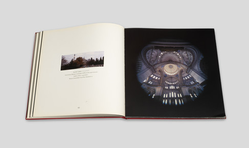 Çift ana kubbeli camilerde kadrajın tam mekânı bölen kemerlerin altında konumlanması, böylesi bölümlerinin arasındaki farkların altını çizmesi etkileyici bir farkındalık. Bergama Camii, Bursa Ulu Camii gibi bir ana kubbesi olmayan yapılarda fotoğrafların farklı kubbeleri farklı açılardan sunması yapıyı ve kubbenin farklı işlevlerini bize tanıtıyor. Genelde tek sayfada yer alan dairesel fotoğrafların yer yer çift sayfaya açılması da fark yaratmış. Kitapta İstanbul, Edirne, Bursa, Bergama gibi şehirlerden İslam mimarisi örneklerini görebiliyoruz. Bunlarla birlikte dönüştürülmüş camilerin yani Küçük Ayasofya, Kalendarhane Camii, Zeyrek Camii gibi yapıların da bulunması İstanbul’un çok katmanlılığını kitaba taşırken yapısal bir form olarak kubbenin evrenselliğine de gönderme yapıyor.