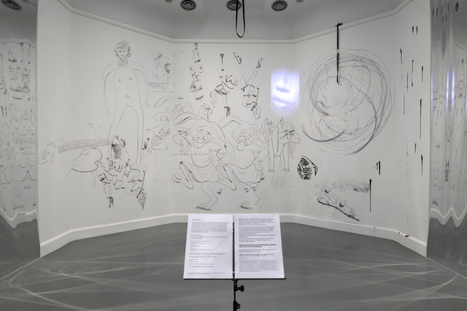Bu başlangıçtan sonra süreç açık bırakılıyor: Yaklaşık iki ay sürecek bir sergi boyunca, her iki-üç haftada bir yeni performanslar gerçekleşecek ve bu performanslardan yeni işler üretilecek. Bu yapı biraz da Van Abbemuseum’da gerçekleştirdiğim Spillage işine benziyor, özellikle çizimlerle, beden üzerinden üretilen izlerle ve süreç odaklı üretimle.