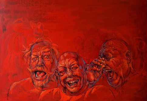 Solda: Mehmet Sıddık Turan, Kahkaha, Tuval Üzerine Yağlı Boya, 70 x 100 cm, 2018