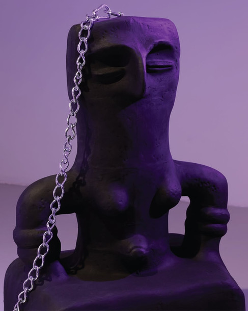Solda: Mona Mahall & Aslı Serbest, yenieski avrupa (Tapınak I), 2026, 3D baskı, fiberglas, mineral kaplama, pigment, metal, 900 × 578 × 443 mm
