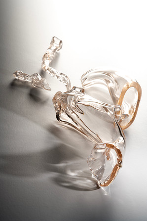 “Formlar, beden jestleri için kendi pratiğimdeki izleri takip ettim, doğal olarak. Bu hareketleri cam malzemeye uyarlamak, teknik olarak hızla soğuyan ve müdahale edilemiyecek kadar sertleşen camda bir hayli zordu. Tekrar tekrar fırına girdiğinde bir önceki yaptıklarım da değişiyordu, ben karşı koymak yerine, camın kendi yapısında, dinamik bir çalışmayla sonuca ulaşıyordum.”